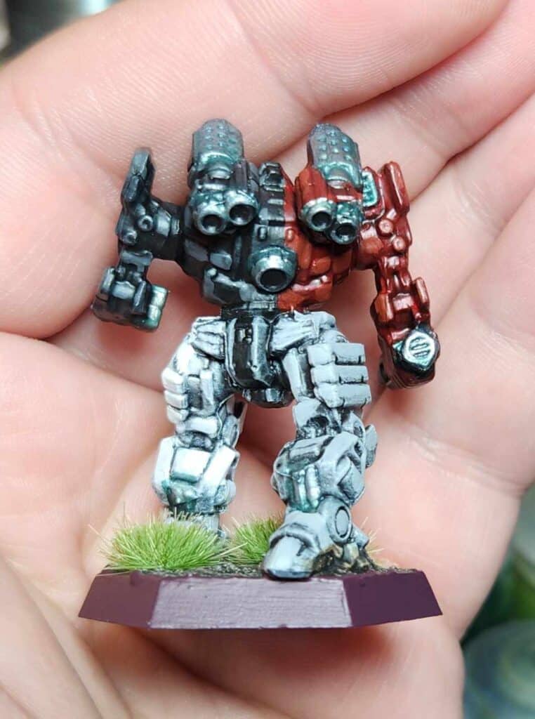 “When Chad first mentioned participating in a painting challenge, and then mentioned the people in the painting challenge, I was admittedly fairly nervous. These were some big names in the BattleTech hobby and several well beyond my league. Granted, it wasn’t a contest, so I decided to go along anyways just to see what would happen. My prompt was “Patriotic/Stencil”, and when Chad explained that this could be designwork, quartering, etc…my mind jumped to Space Marines and all those goofy quartered schemes that exist.