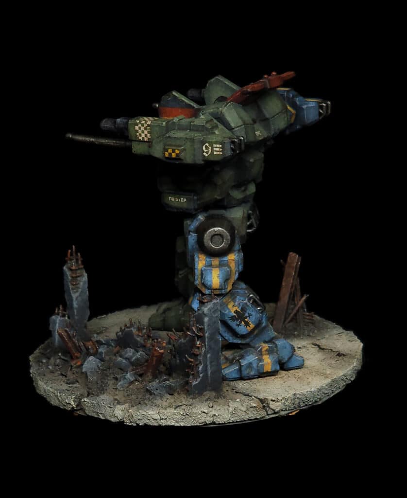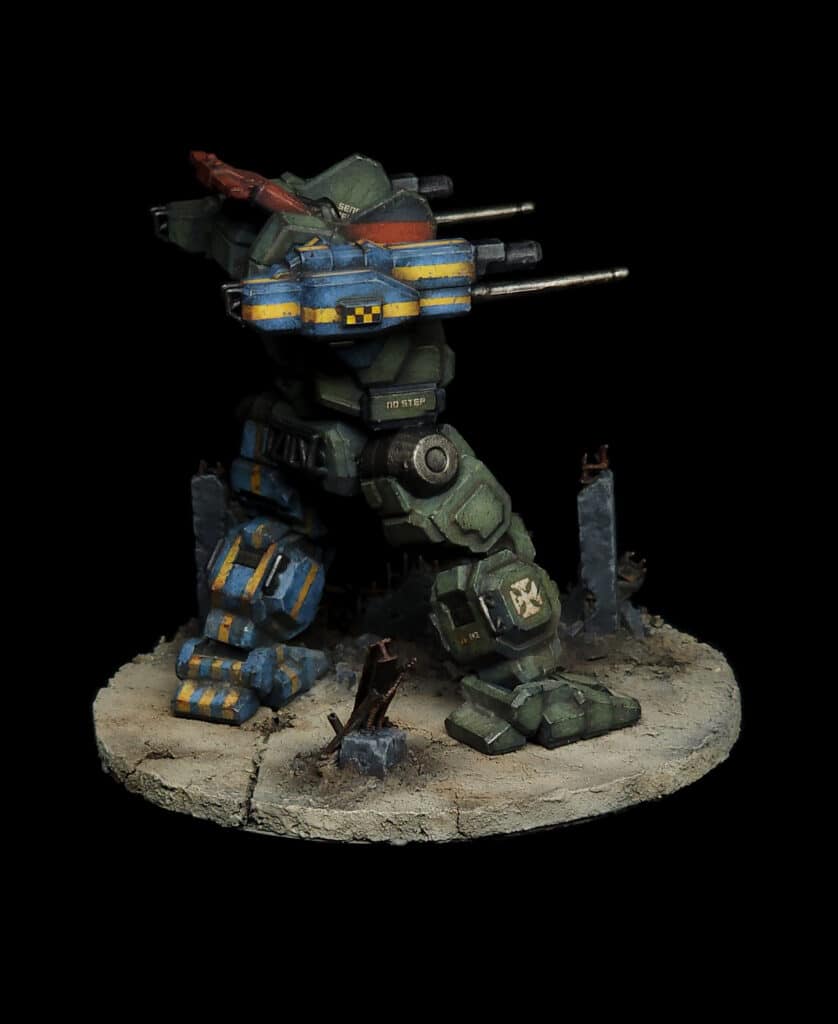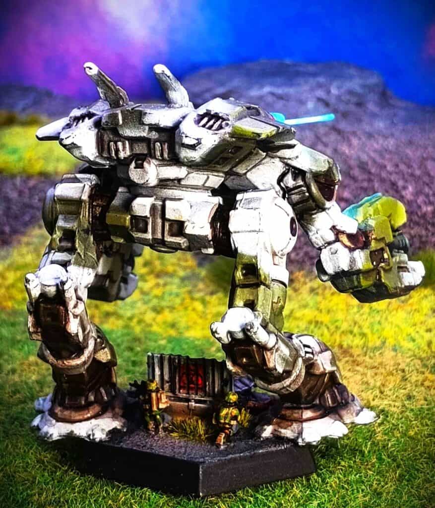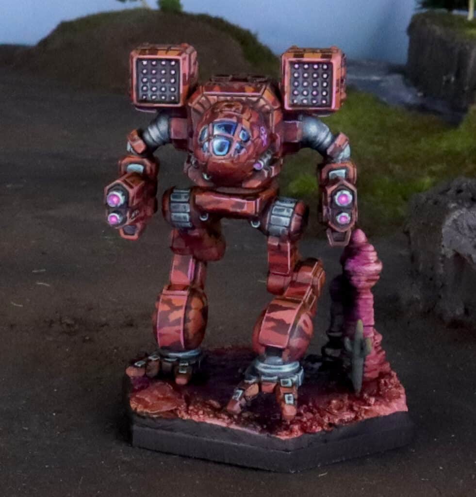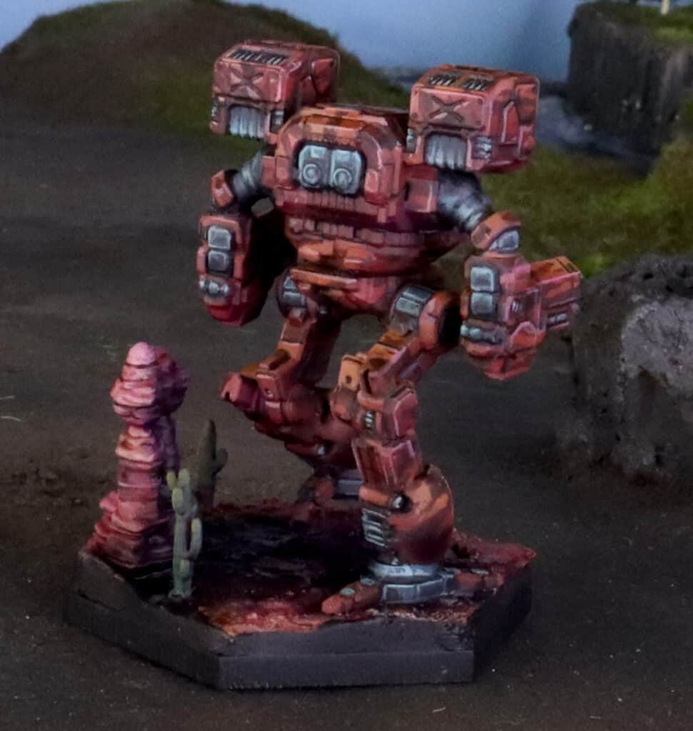 Iota Galaxy has long been Hell’s Horses dumping ground for old warriors, and I wanted to paint a mech befitting a seasoned veteran, ready for retirement, but with maybe one last score to settle or the kids are getting a little too close on their jet skis.