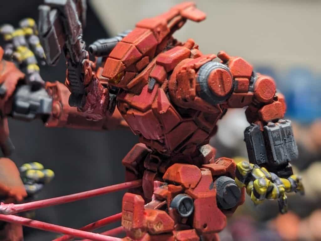 “My two parameters were ‘inked’ and ‘basic’. The first was described as tattoo-like patterns, flames, skulls, and that sort of thing. The second was interesting in that it called for me to use a single color to drive everything, using shades and tints of the core only. I chose to interpret that as ‘colored areas on the mech’ instead of every single part of the model and base as I felt that would lead to a pretty uninteresting paint job. Maybe someone better than me can take up that challenge, but I choose to go with ‘armor only’ as to where to approach it.